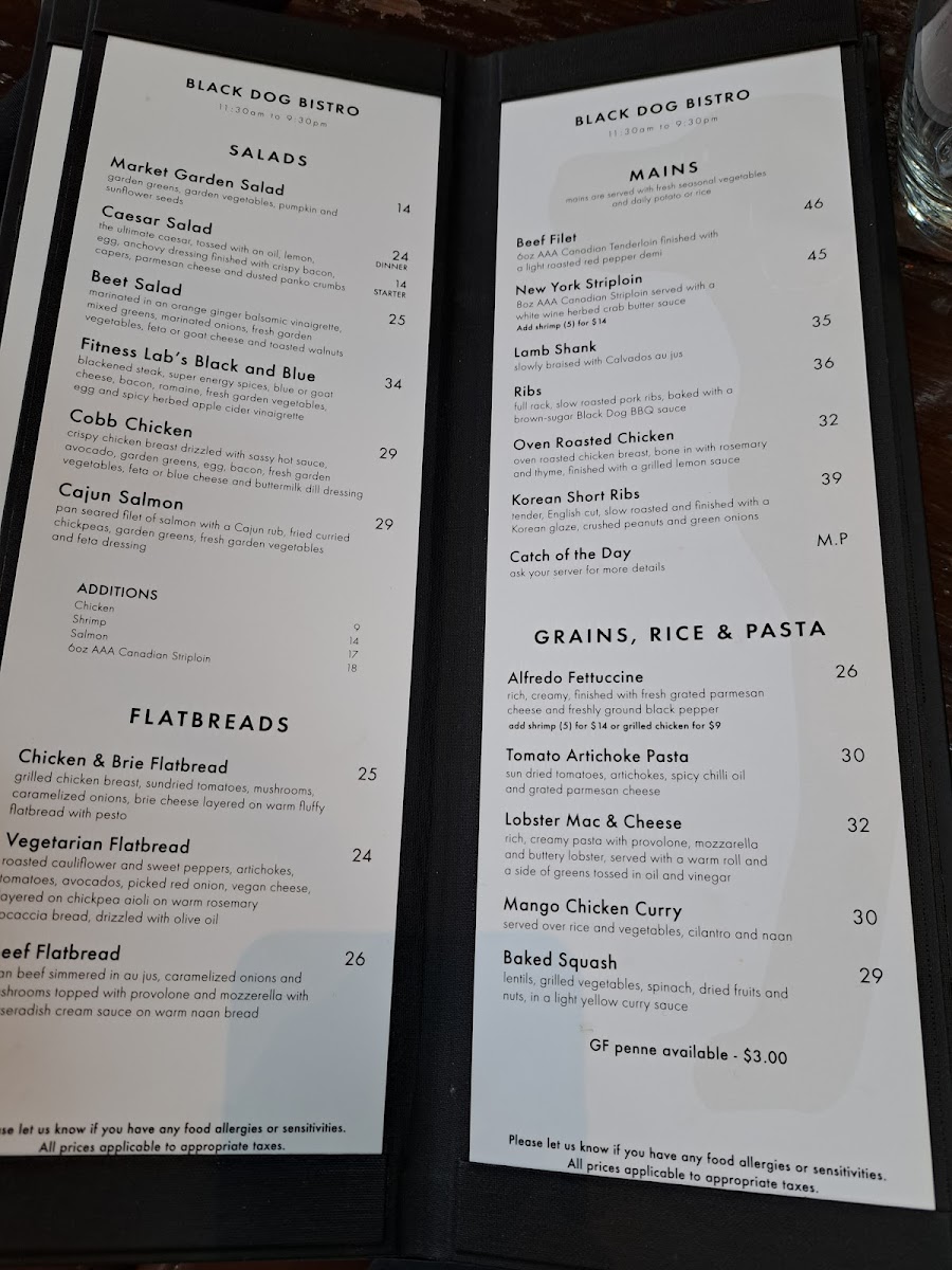 Welcome to Black Dog Bistro, a hidden gem located in the heart of Manotick. This inviting eatery offers a menu brimming with diverse culinary delights, ensuring there's something for everyone. Start your meal with vibrant salads like the Market Garden Salad or the indulgent Cobb Chicken. For mains, the Beef Filet and Korean Short Ribs stand out, promising a rich and savory experience. If you're in the mood for pasta, the Lobster Mac & Cheese is a must-try and a favorite among patrons.